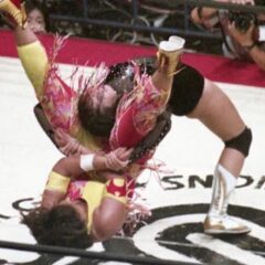 サドンデス(疑惑の右足)「硬くて重いものが仕込まれている」という疑惑のシューズで顔面を蹴りフォールを奪う。