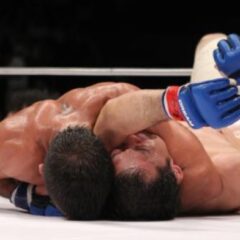 カルマ相手の股を通して片腕を掴み、首と腕で相手を持ち上げ、自分は両足を投げ出して、相手をマットに落とす。
