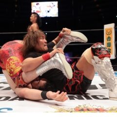 エリミネーター相手をのど輪で持ち上げマットに叩きつける。