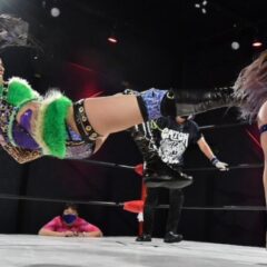 フランケンシュタイナー・・ウラカンラナ・・レプテリアン相手の首に両足で組み付き、バク転の要領で回転しマットに手をつき、相手を前転させながらマットに寝かせフォールする。