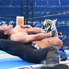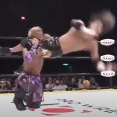 サドンデス(疑惑の右足)「硬くて重いものが仕込まれている」という疑惑のシューズで顔面を蹴りフォールを奪う。